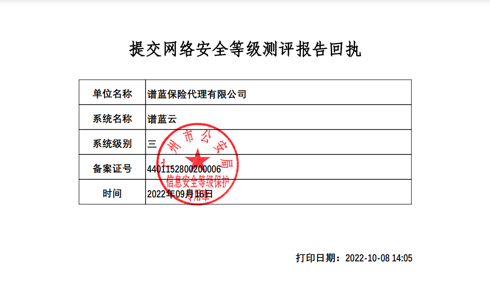谱蓝保互联网保险网络安全等级保护三级认证