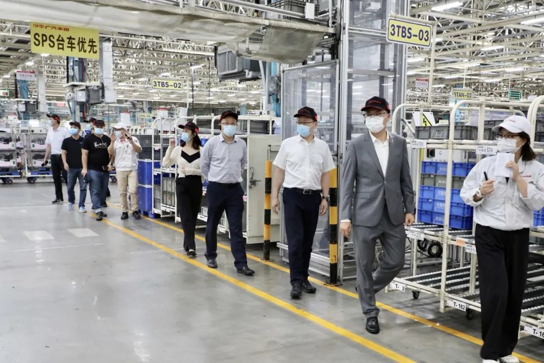 代表一行首先现场考察了广汽丰田工厂的建设运营情况,详细了解了广丰工厂作为广汽核心承载生产区的运营规划。
