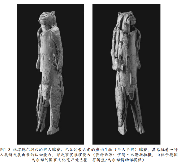 因为雕像的形象不是纯粹的人或狮子,它是一个只存在于想象中的生物。这意味着人类发展出了想象从未存在之物的能力,这种认知能力的飞跃对我们人类这个物种来说意义深远且至关重要。